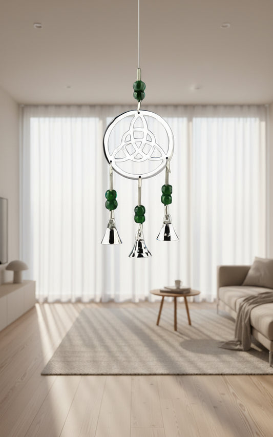 Triple Moon Pentagram Brass Chime With Beads 9" Long
