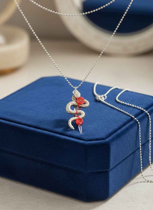 Silver Snake Wire Wrapped Coffin Nail Necklace