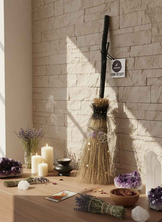 Raven Moon Mini Besom - Enchanting Tool for Crystal Cleansing and Rituals