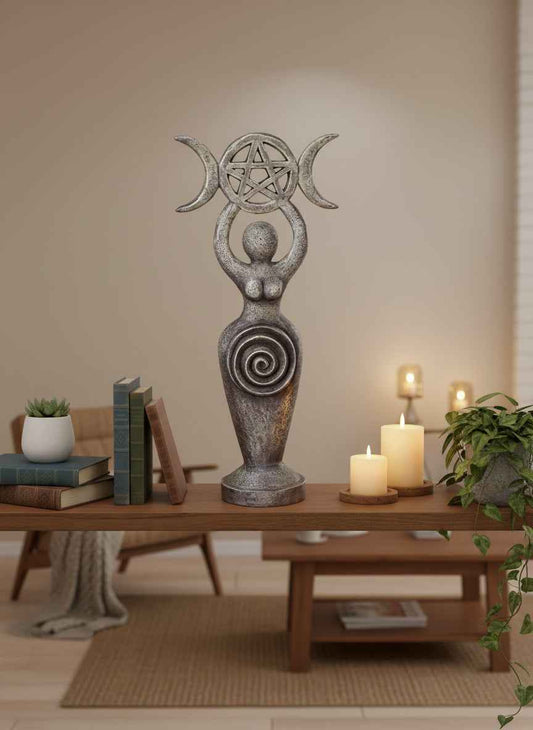 Spiral Triple Moon Goddess Statue for Spiritual Decor and Protection